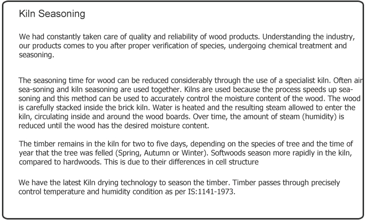 Understanding the industry, our products comes to you after proper verification of species, undergoing chemical treatment and seasoning.